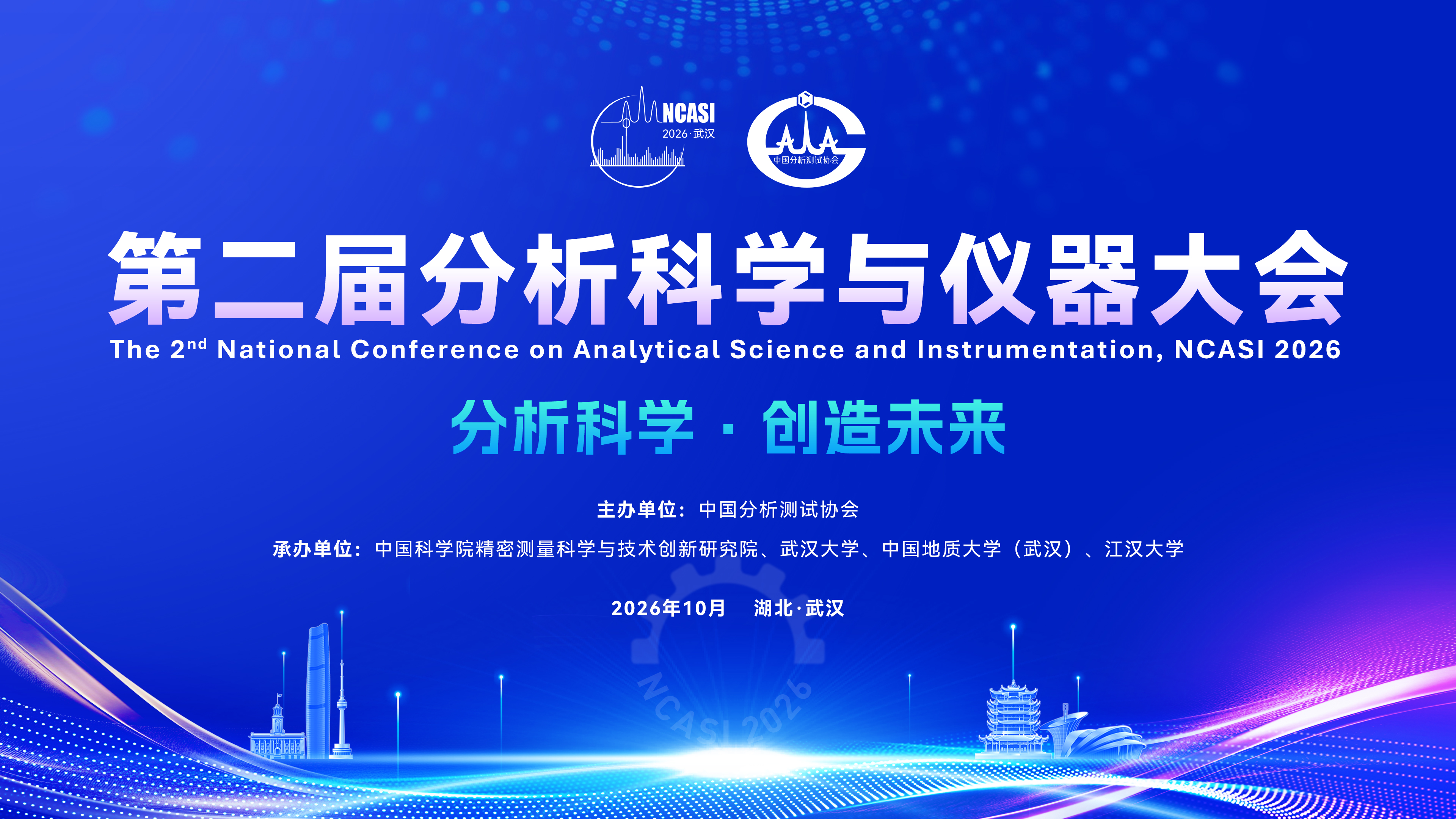 为了推动我国分析科学与仪器领域自主创新和高质量发展,加强产学研用联合协作,促进分析科学基础研究和仪器研发,提升人才培养和仪器制造的水平,由中国分析测试协会主办,中国科学院精密测量科学与技术创新研究院、武汉大学、中国地质大学(武汉)、江汉大学共同承办的第二届分析科学与仪器大会(The 2nd National Conference on Analytical Science and Instrumentation, NCASI 2026)将于2026年10月底或11月初在武汉召开。